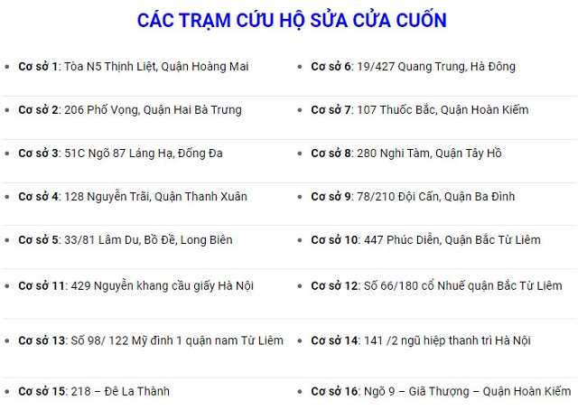 Địa chỉ các trạm sửa chữa – cứu hộ cửa cuốn tại Hà Nội của Hùng Dũng gồm có:
